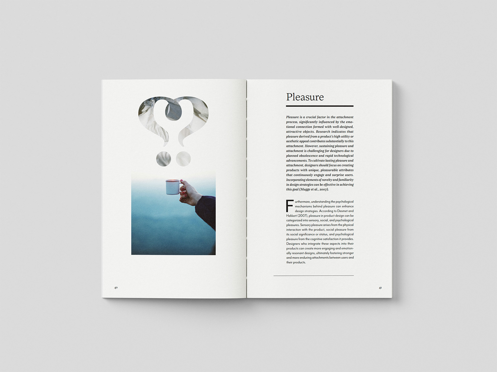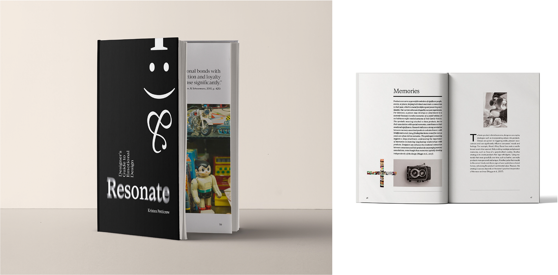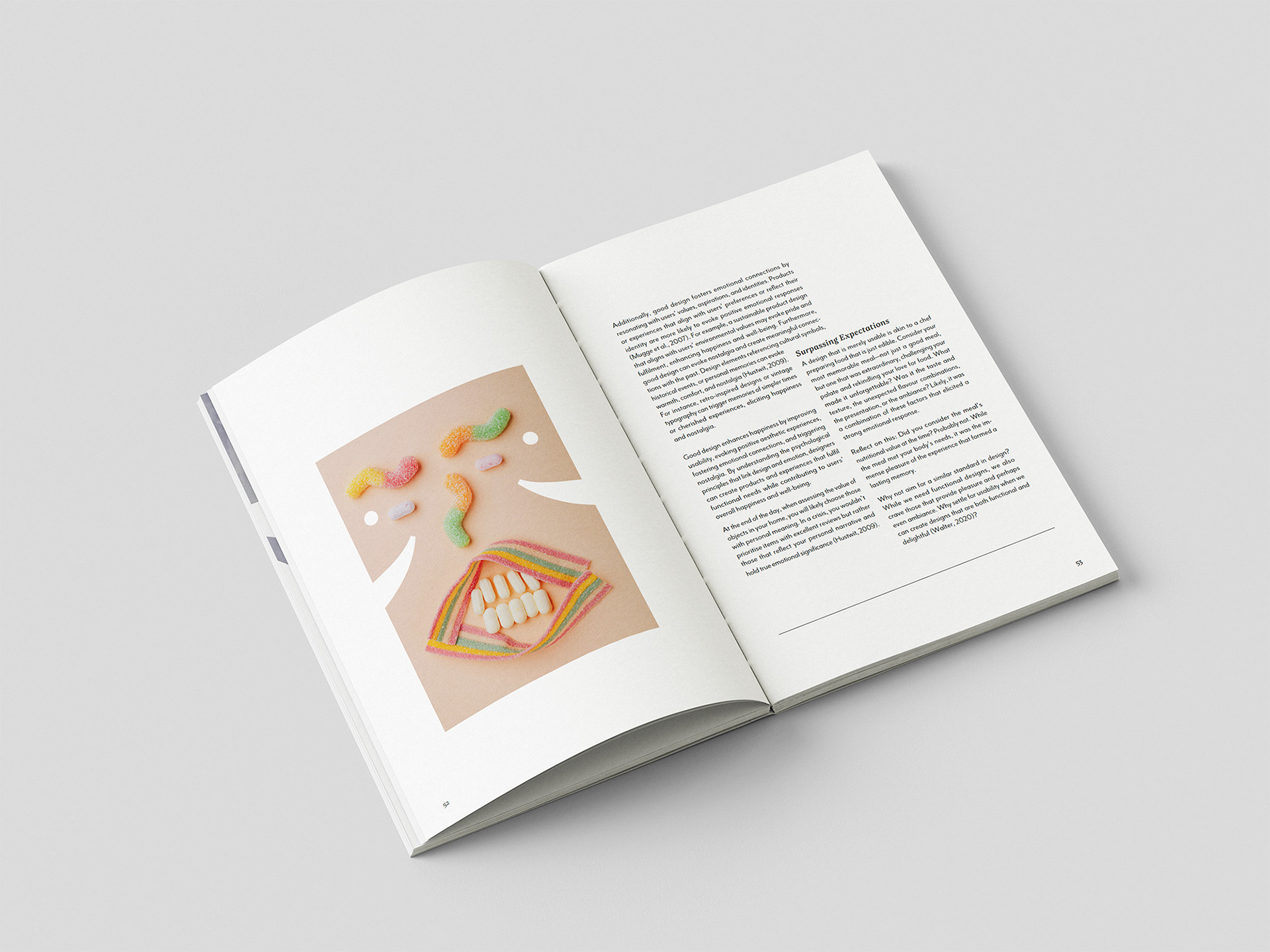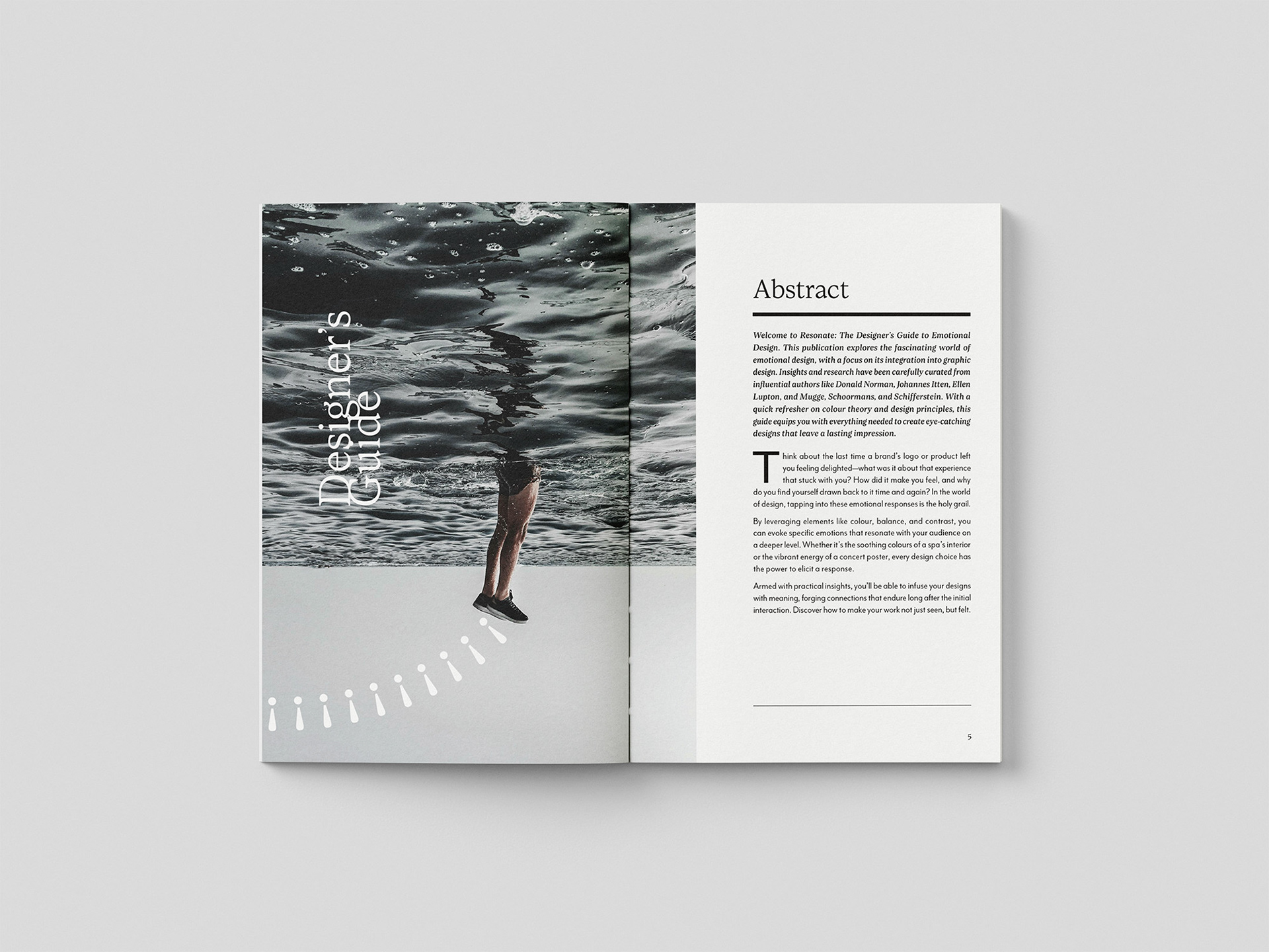 Resonate is a 75-page case-bound A5 publication exploring how design influences emotion. From research and manuscript development through to typesetting and layout, the project was about crafting a guide that felt both professional and playful. The grid system was used flexibly, striking a balance between hierarchy and expression, while punctuation-mark illustrations added small moments of humour throughout. The process was a real learning curve in typography and justification, and it highlighted just how valuable feedback can be in shaping a stronger final outcome.
