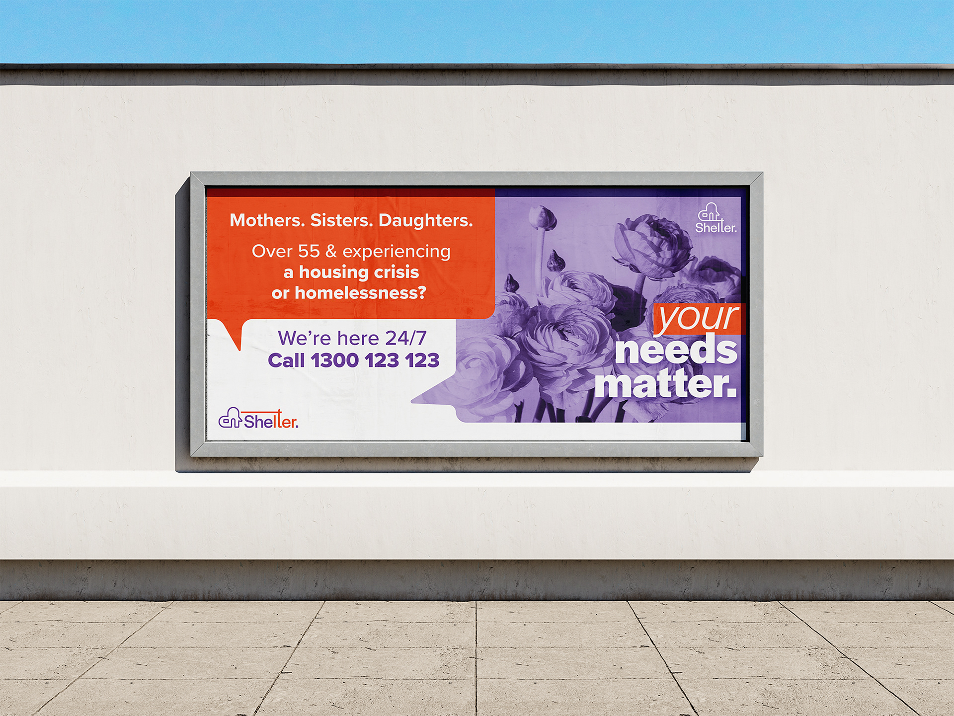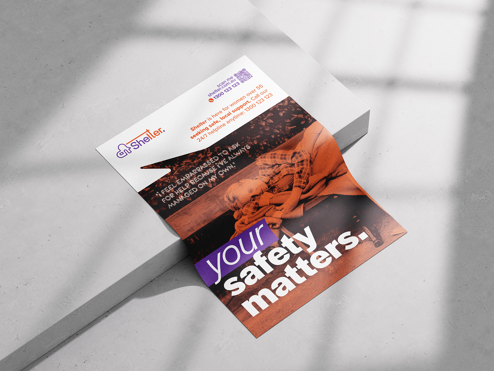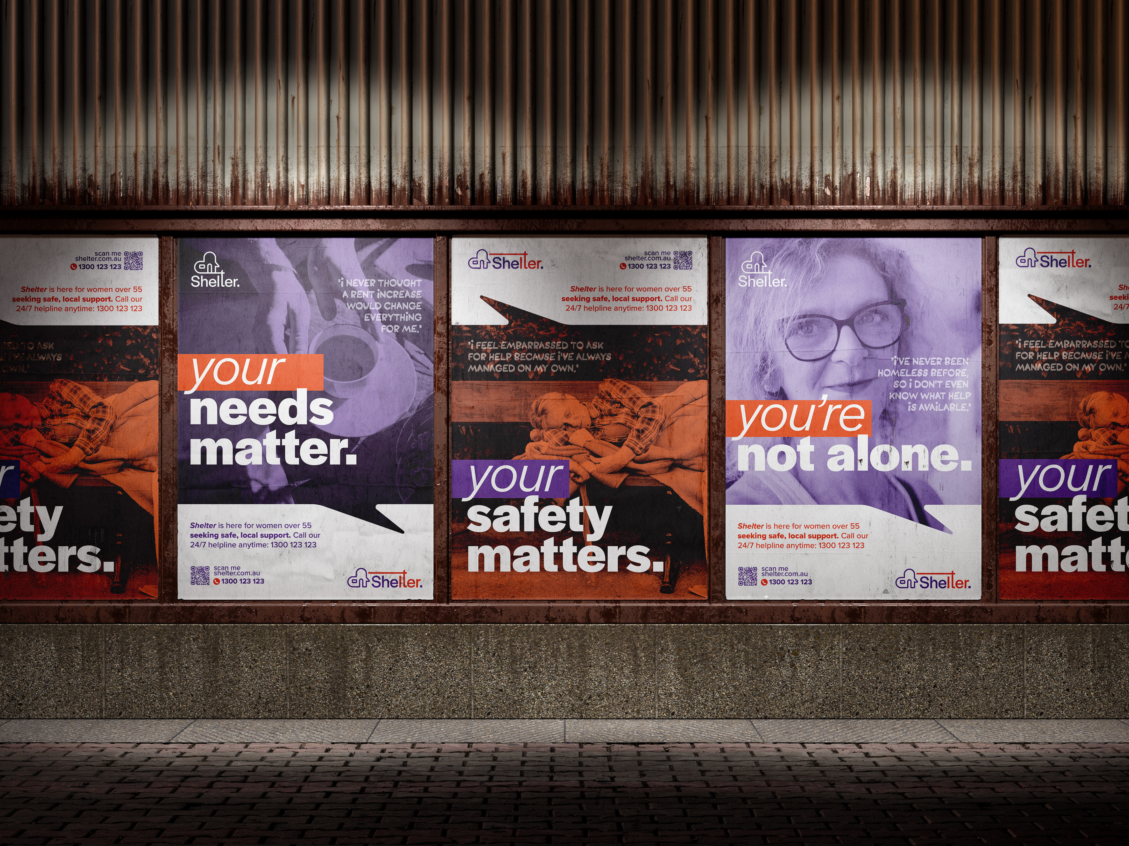 A branding and awareness campaign concept (university assignment) developed to help older women experiencing or at risk of homelessness connect with support discreetly and with dignity. The challenge was to create a visual identity that felt safe, respectful, and empowering—without relying on digital access or resorting to shock tactics.